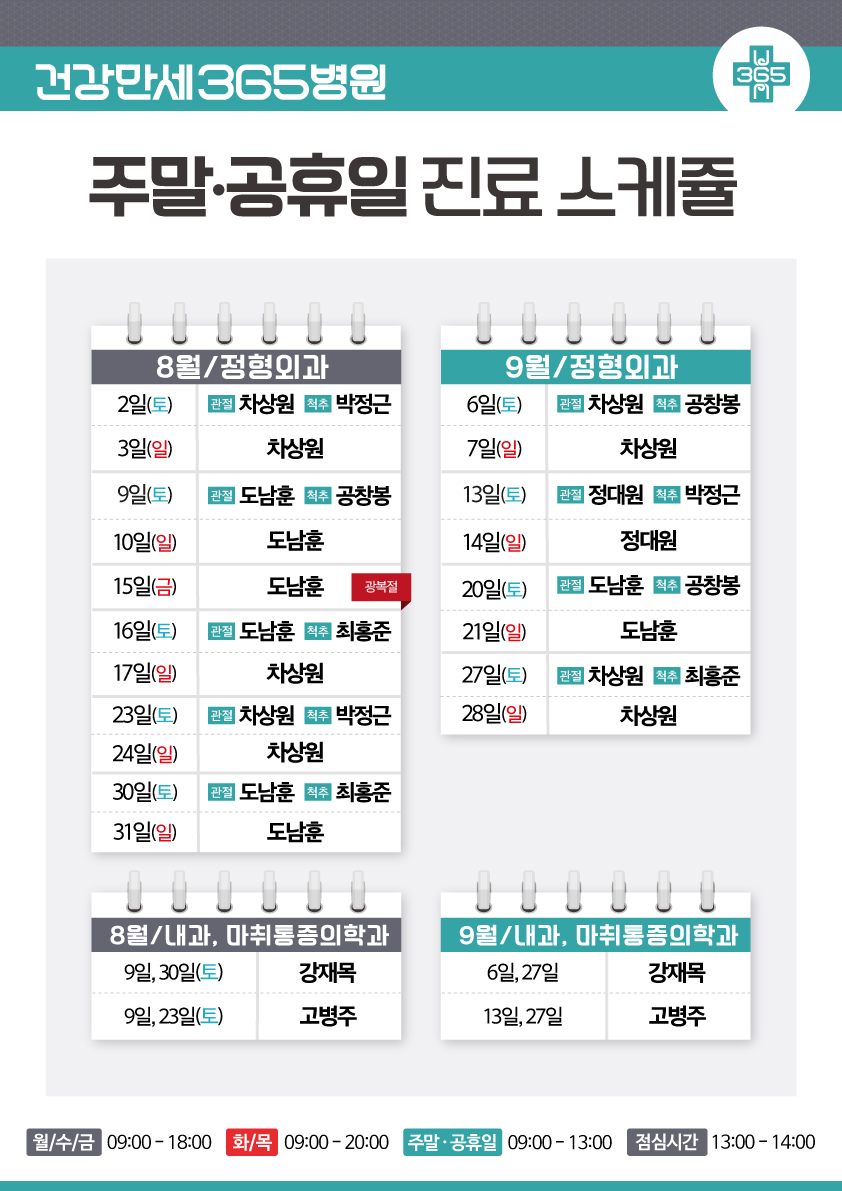9월 진료 일정을 확인하시고