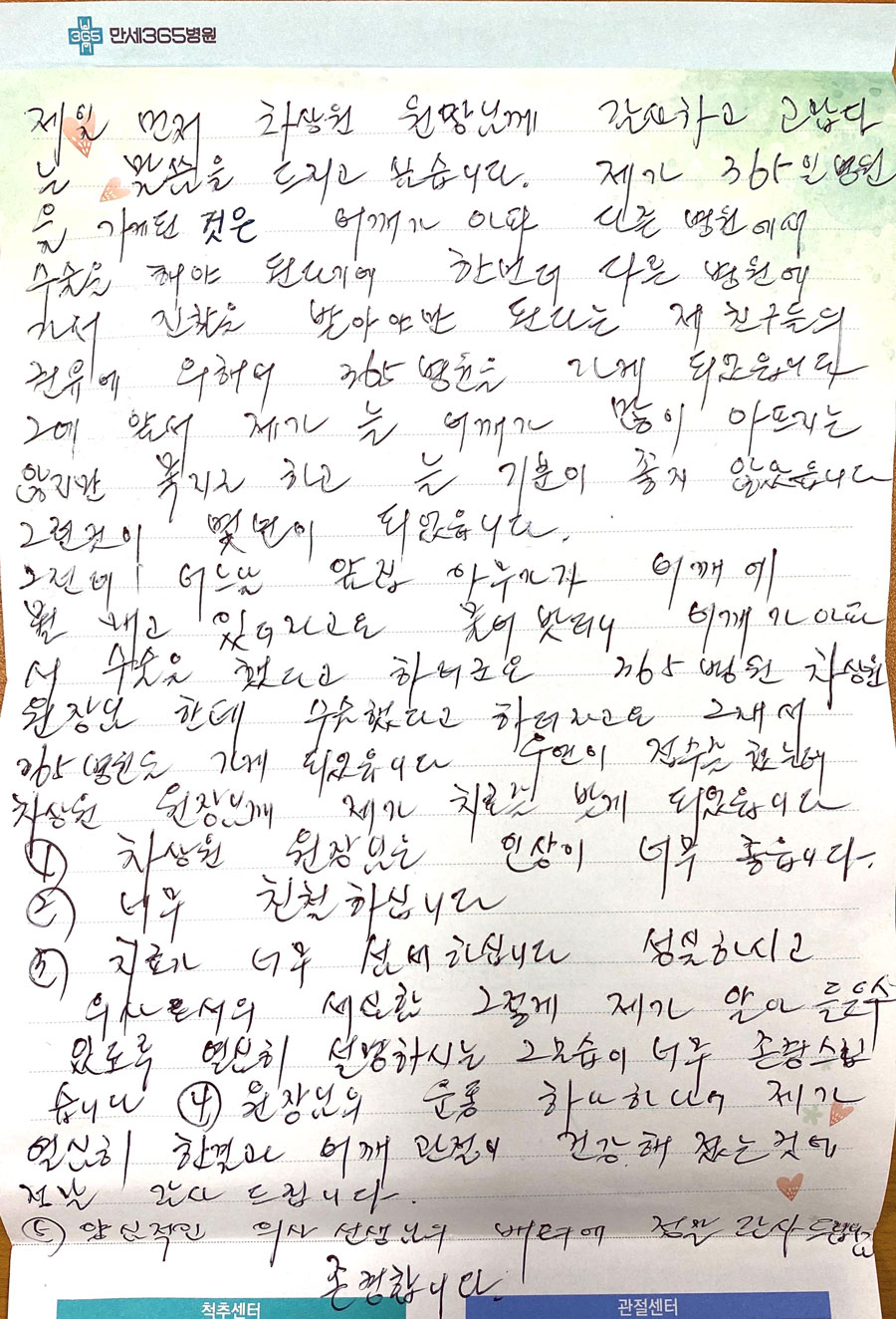 자필후기 / 차상원 원장님께 감사하고 고맙습니다